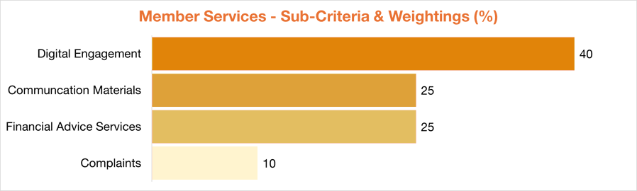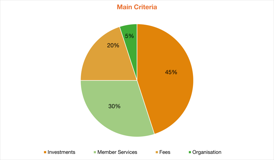 While investments carry the highest weighting in our ratings process, we believe member services are also vitally important for pension members. For that reason they account for 30% of our overall weighting.