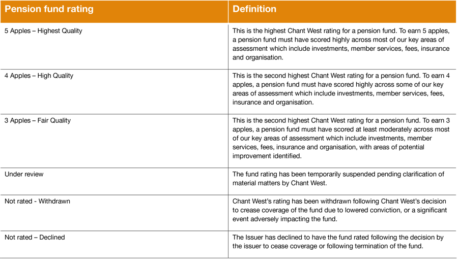 The result is a set of ratings that encapsulate our view about the quality of each fund we rate. We express those ratings in terms of Apples, reflecting our ‘apples with apples’ approach. Funds earn a rating ranging from 5 Apples, our highest grade, to 1 Apple, our lowest.
