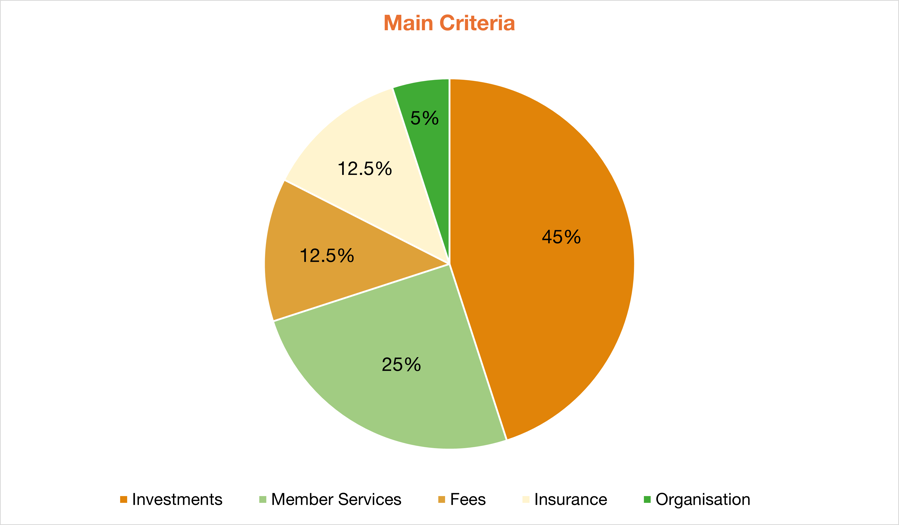 In rating super funds, we apply a methodology that has been developed over more than 20 years. This focuses on five main criteria: investments, member services, fees, insurance and organisational strengths.